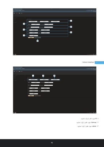 :Network interface .ﺪﯿﯾﺎﻤﻧ دراو ار ﺮﻈﻧ درﻮﻣ IP -١ .ﺪﯿﯾﺎﻤﻧ دراو ار ﺮﻈﻧ درﻮﻣ Gateway -٢ ﺪﯿﯾﺎﻤﻧ دراو ار ﺮﻈﻧ درﻮﻣ subnet -٣ ٢٤ ٢٤ ٢٤