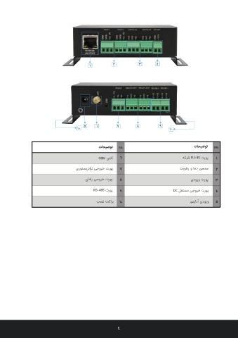 ١٠ ١٠ تﺎﺤﯿﺿﻮﺗ no. تﺎﺤﯿﺿﻮﺗ no. GSM ﻦﺘﻧآ ٦ ﻪﮑﺒﺷ RJ-45 ترﻮﭘ ١ یرﻮﺘﺴﯾﺰﻧاﺮﺗ ﯽﺟوﺮﺧ ترﻮﭘ ٧ ﺖﺑﻮﻃر و ﺎﻣد رﻮﺴﻨﺳ ٢ یا ﻪﻟر ﯽﺟوﺮﺧ ترﻮﭘ ٨ یدورو ترﻮﭘ ٣ RS-485 ترﻮﭘ ٩ DC ﻞﻘﺘﺴﻣ ﯽﺟوﺮﺧ ترﻮﭘ ٤ ﺐﺼﻧ ﺖﮐاﺮﺑ ١٠ رﻮﺘﭘادآ یدورو ٥ ٤ ٤ ٤